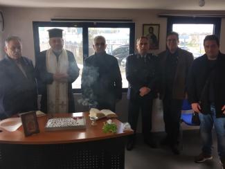 Αγιασμός ενόψει έναρξης της τουριστικής σεζόν και κοπή βασιλόπιτας του Αστυνομικού Σταθμού Κρατικού Αερολιμένα Καλαμάτας από τον Πατέρα Νικόδημο παρουσία του Δ/ντη της Δ.Α. Μεσσηνίας Ταξιάρχου κ. Αξιοτόπουλου Ηλία, του Αερολιμενάρχη κ. Μανδηλάρη Δημητρίου, του Β Υποδιευθυντή της Δ.Α. Μεσσηνίας Α/Δ κ. Νάκη Παναγιώτη, του Διοικητή της Υπηρεσίας Α/Β Κωνσταντακόπουλου Νικολάου, του Προέδρου της Ένωσης Αξιωματικών Περ. ΠΕΛ/σου κ. Αντωνόπουλου Νικολάου, του προέδρου της Ένωσης Αστυνομικών Υπαλλήλων Μεσσηνίας κ. Σταυρόπουλου Κωνσταντίνου και του προσωπικού.