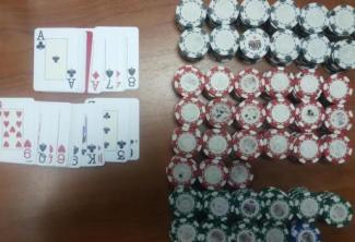 Το παιχνίδι διεξαγόταν σε ειδικά διαμορφωμένο τραπέζι, ενώ σε έρευνες που ακολούθησαν οι Αστυνομικοί βρήκαν και κατέσχεσαν, τραπουλόχαρτα και 455 μάρκες σε διάφορα χρώματα, οι οποίες αντιστοιχούσαν σε προσυμφωνημένα χρηματικά ποσά.