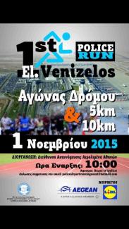 Η Διεύθυνση Αστυνόμευσης Αερολιμένα Αθηνών με την υποστήριξη της Ένωσης Αστυνομικών Υπαλλήλων Νοτιοανατολικής Αττικής, διοργανώνει, την Κυριακή 1 Νοεμβρίου 2015 και ώρα 10:00, αγώνα δρόμου 5 & 10 χιλιομέτρων «1st POLICE RUN El. Venizelos» στο χώρο εντός του Διεθνή Αερολιμένα Αθηνών με αφετηρία το κτίριο 10.