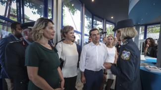 Το περίπτερο της Ελληνικής Αστυνομίας ήταν η τελευταία στάση του πρωθυπουργού, Αλέξη Τσίπρα, στη βόλτα που έκανε στους χώρους της 83ης Διεθνούς Έκθεσης Θεσσαλονίκης.