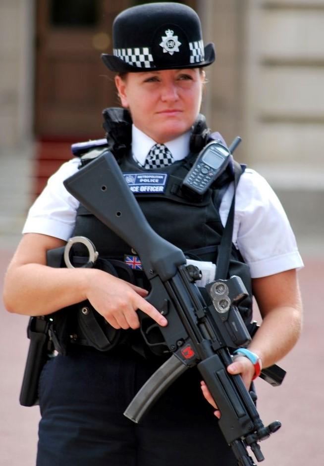 Εξετάζοντας τον παράγοντα της εμφάνισης του αστυνομικού, η χρήση του αλεξίσφαιρου γιλέκου βελτιώνει την επαγγελματική του εικόνα, ενισχύοντας παράλληλα την έννοια «αποτροπή», ήδη από το στάδιο της ΠΑΡΟΥΣΙΑΣ στην κλίμακα μέσων άσκησης ελέγχου. Οι δύο γυναίκες αστυνομικοί της Μητροπολιτικής Αστυνομίας του Λονδίνου, φορούν μεν την ίδια στολή, η διαφορά όμως της επάνω εικόνας σε σχέση με την κάτω είναι προφανής.
