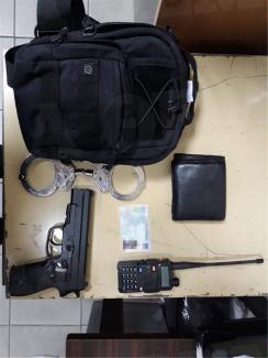 Αμέσως κινητοποιήθηκαν οι αστυνομικοί προκειμένου να προβούν στον έλεγχο των στοιχείων του. Όταν όμως τον πλησίασαν για να τον ελέγξουν, εκείνος τράπηκε σε φυγή. Κατά την διάρκεια της καταδίωξης ένας αστυνομικός κατάφερε και απέσπασε το τσαντάκι του 28χρονου το οποίο περιείχε ένα αεροβόλο όπλο με μεταλλικά σφαιρίδια, μια αληθινή αστυνομική ταυτότητα που ανήκει σε αστυφύλακα ο οποίος είχε δηλώσει την απώλεια της το 2016, χειροπέδες και έναν ασύρματο I-Com ο οποίος ήταν ρυθμισμένος στη συχνότητα του καναλιού του κέντρου της Ασφάλειας Αθηνών.