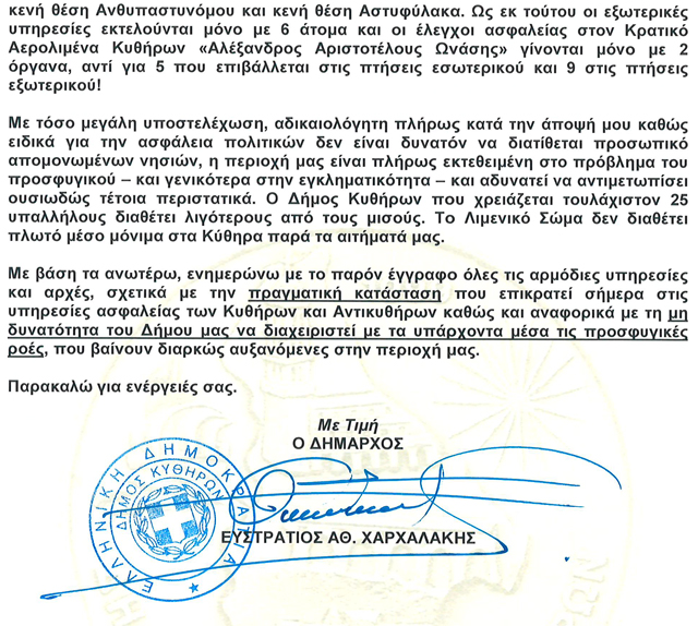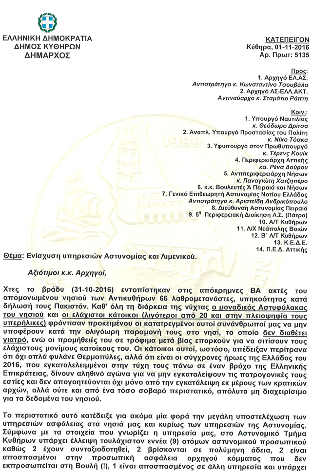 Αμεση ενίσχυση χρειάζεται το Α.Τ. Κυθήρων