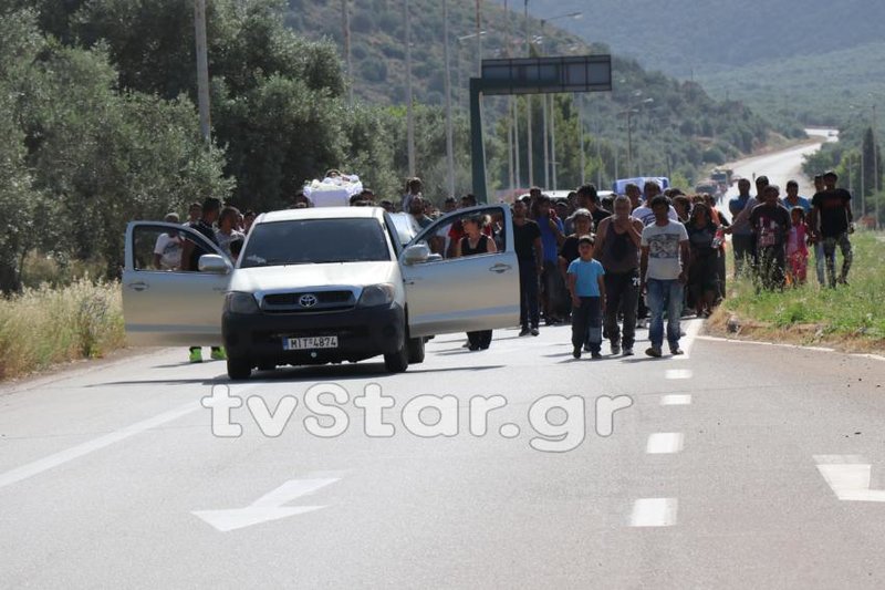 Λίγα λεπτά μετά την κηδεία ομάδα Ρομά διέκοψε την κυκλοφορία της Εθνικής οδού Λαμίας-Άμφισσας στο ύψος του καταυλισμού και άναψαν φωτιές καίγοντας λάστιχα.