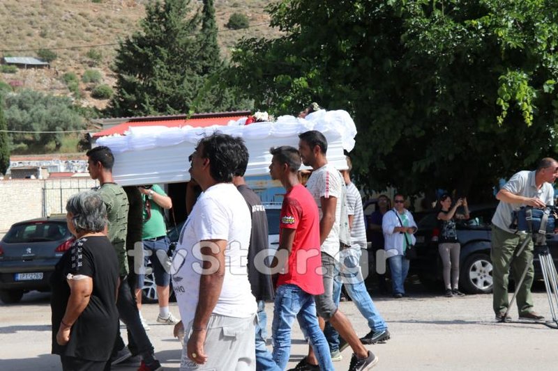 Σε λευκό φέρετρο, ντυμένη νύφη υπό τους ήχους τσιγγάνικης μουσικής από αγροτικό αυτοκίνητο που προπορευόταν με ανοιχτές πόρτες συνοδεύτηκε από τους Ρομά κατοίκους του καταυλισμού στην τελευταία της κατοικία.