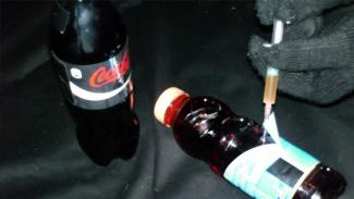 Για τα προϊόντα τις Nestle και της Coca Cola ακολουθήθηκε η εξής διαδικασία: ξεκολλήσαμε ελάχιστα την ετικέτα τους, και στο σημείο της κολλας ανοίξαμε με πυρωμένο τσιμπιδάκι πολύ λεπτή τρυπα ώστε να χωρα ισα ισα η μύτη της σύριγγας και να αφαιρέσουμε 20mL απ' τα προϊόντα, επανατοποθετώντας 20mL υδροχλωρικού οξέως. Σφραγίσαμε την τρυπα με ελαχιστη σιλικόνη και απλά ξανακολλήσαμε την ετικέτα. Δεν υπήρξε κάποια εμφανής παραμόρφωση του προϊόντος.