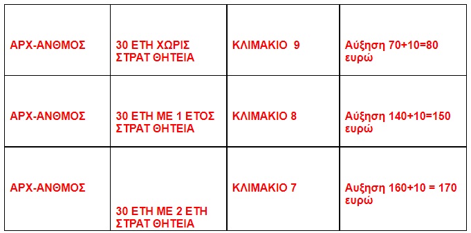 Στον παρακάτω πίνακα βλέπετε το οικονομικό όφελος που έχει ο Αρχ/κας που προάγεται σε Ανθ/μο ανάλογα με την στρατιωτική θητεία που είχε.