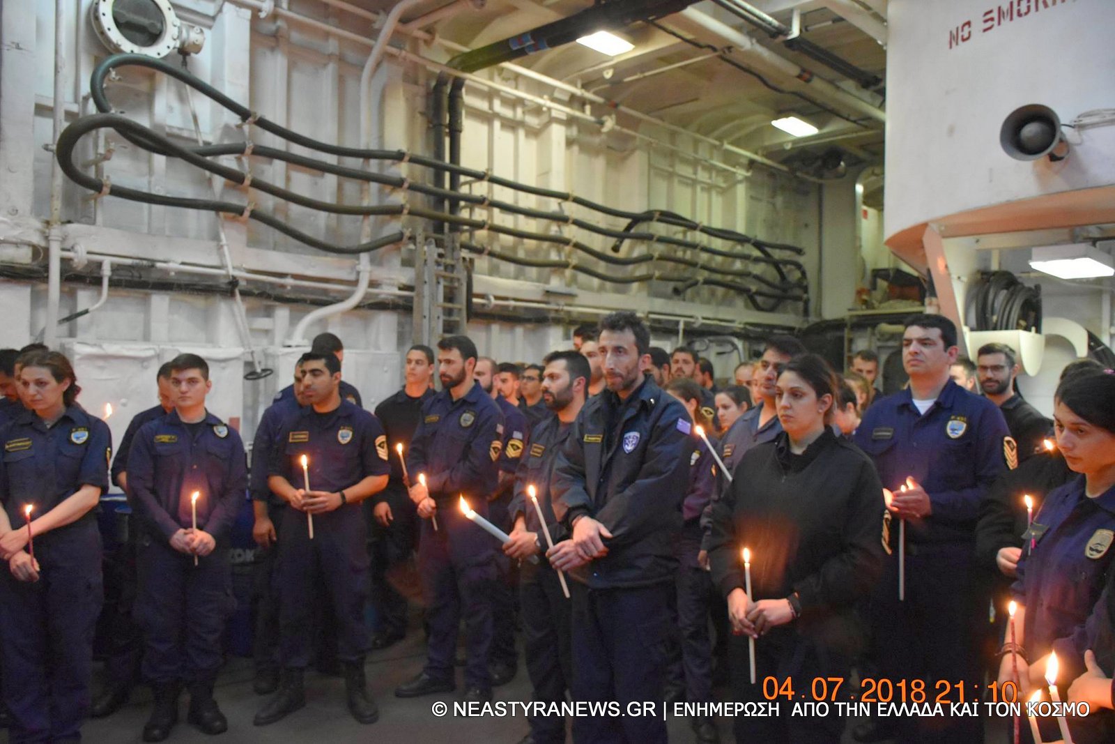 Ο κυβερνήτης της Φ/Γ ΛΗΜΝΟΣ, Αντιπλοίαρχος, Διονύσιος Μανταδάκης Π.Ν., καθώς και όλο το πλήρωμα του πλοίου συμμετείχαν στην Αναστάσιμη τελετή ψάλλοντας το Χριστός Ανέστη.