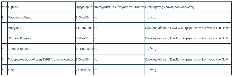 Η ΕΛ.ΑΣ. εφαρμόζει πολιτική λογοδοσίας για την ενημέρωση των πολιτών με την μηνιαία δημοσίευση στοιχείων για : το σύνολο του αστυνομικού έργου, τους ελέγχους κατά της πανδημίας, τις συναθροίσεις, την διατάραξη κοινής ησυχίας. Από σήμερα και κάθε μήνα θα δημοσιεύονται επίσης στοιχεία για την πρόοδο διερεύνησης των υποθέσεων καταγγελιών περί άσκησης υπέρμετρης αστυνομικής βίας, που έχουν λάβει ιδιαίτερη δημοσιότητα.
