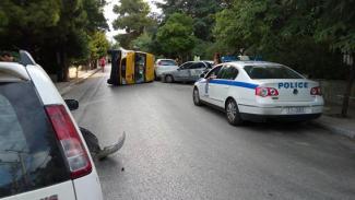Το ΙΧ παραβίασε το STOP επί της Μπακογιάννη με αποτέλεσμα να συγκρουστεί με το σχολικό λεωφορείο που εκινείτο επί της Θερμοπυλών. Το σχολικό προσέκρουσε σε παρακείμενα αυτοκίνητα και στη συνέχεια ανατράπηκε.