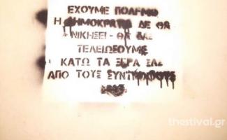 Παρέμβαση στην είσοδο της πολυκατοικίας όπου στεγάζεται το πολιτικό γραφείο του βουλευτή της ΝΔ στην Α΄Θεσσαλονίκης, Δημήτρη Κούβελα, πραγματοποίησαν αντιεξουσιαστές.