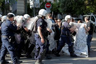 Παράλληλα την ίδια ημέρα συγκέντρωση συμπαράστασης και αλληλεγγύης στους Γάλλους αγωνιζόμενους πραγματοποιήθηκε και έξω από τη Γαλλική Πρεσβεία στην Αθήνα, υπό την παρουσία αστυνομικών δυνάμεων.