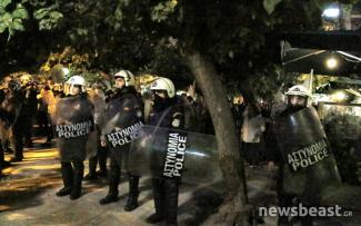 Η αντιπαράθεση μένει μόνο στο επίπεδο συνθημάτων, αν και αισθητή είναι η παρουσία των ΜΑΤ, με τουλάχιστον 2 διμοιρίες να βρίσκονται στο σημείο.