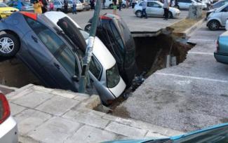 Η υποχώρηση του οδοστρώματος παρέσυρε αρκετά αυτοκίνητα με τους ιδιοκτήτες να αναζητούν ήδη από που θα αποζημιωθούν.