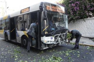Το λεωφορείο σταμάτησε όταν παρέσυρε δύο παρκαρισμένα αυτοκίνητα, τα οποία του έφραξαν τον δρόμο και το ακινητοποίησαν.