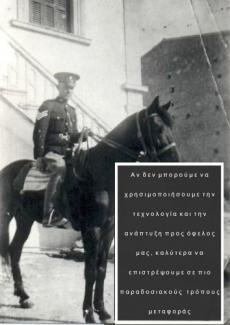 Η Αστυνομία Κύπρου στον επίσημο λογαριασμό της, που διατηρεί στο κοινωνικό μέσο δικτύωσης, Facebook ανήρτησε σήμερα μια φωτογραφία πολλών χρόνων πριν, στην οποία φωτογραφίζεται ένας λοχίας της Αστυνομίας, φορώντας τη στολή του σώματος να καβαλά ένα άλογο. Στη φωτογραφία η Αστυνομία επισύναψε λεζάντα η οποία αναφέρει "Αν δεν μπορούμε να χρησιμοποιήσουμε την τεχνολογία και την ανάπτυξη προς όφελός μας, καλύτερα να επιστρέψουμε σε πιο παραδοσιακούς τρόπους μεταφοράς" υπενθυμίζοντας με αυτόν τον τρόπο στο κοινό πως η οδική συνείδηση είναι μονόδρομος και οχι επιλογή.