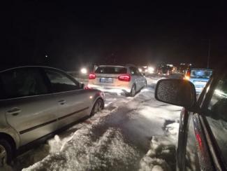 Το χαλάζι που έχει πέσει στην περιοχή είναι τόσο πυκνό που έχει δημιουργήσει ουρές χιλιομέτρων στην εθνική οδό και το ύψος του ξεπερνά του 15 πόντους!