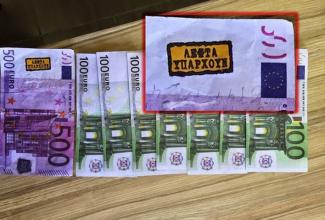 Τα πλαστά αυτά χρήματα είχε παραδώσει ο 48χρονος, ο οποίος και συνελήφθη, σε έναν 59χρονο από τον οποίο έλαβε ως αντάλλαγμα 207.000... δραχμές. Ο λόγος που ο συλληφθείς αντάλλαξε πλαστά ευρώ με δραχμές παραμένει άγνωστος όπως και ο λόγος που πρόσθεσε πάνω στο 500άρικο τη φράση «Λεφτά Υπάρχουν».