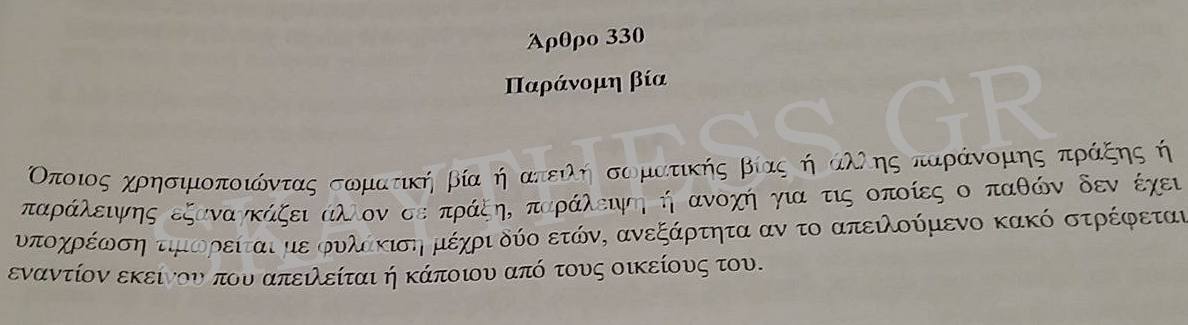 Το εξαγγελλόμενο κακό της απειλής που στρέφεται κατά του Γ αφορά τη θανάτωση ή βλάβη, διότι μόνο ο επικείμενος κίνδυνος σώματος ή ζωής στοιχειοθετεί την απειλή του αρ. 380 παρ. 3 ΠΚ. Κατά την κρατούσα και ορθή γνώμη δεν απαιτείται να είναι η απειλή αντικειμενικά πραγματοποιήσιμη ούτε να έχει ο δράστης την πρόθεση να την πραγματοποιήσει. Αρκεί ότι ο Φ τη θεωρεί κατάλληλη να υπερνικήσει την αντίσταση του Γ . Επικείμενος είναι ο κίνδυνος όταν μπορεί να πραγματωθεί όχι μόνο την επόμενη χρονική στιγμή αλλά και την επόμενη χρονική στιγμή. Όταν ο κίνδυνος αναφέρεται το μέλλον δεν είναι επικείμενος.