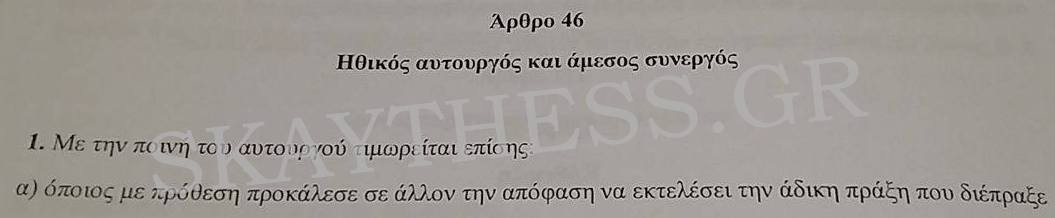 i) – Ηθικός αυτουργός και άμεσος συνεργός – Άρθρο 46.
