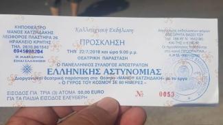 Μεγάλο θράσος είχαν απατεώνες που "μαγείρεψαν" ψεύτικες προσκλήσεις για δήθεν θεατρική παράσταση που θα γινόταν για λογαριασμό του Πανελλήνιου συλλόγου απόστρατων της Ελληνικής Αστυνομίας.