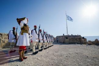 "Ο Υπουργός Εθνικής Άμυνας κ. Νικόλαος Παναγιωτόπουλος, με αφορμή τη συμπλήρωση 75 χρόνων από την Απελευθέρωση της Αθήνας από τα Γερμανικά Στρατεύματα, παρέστη σήμερα στην επετειακή τελετή έπαρσης της ελληνικής σημαίας στον Ιερό Βράχο της Ακρόπολης.