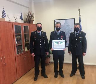 Το Αστυνομικό Μετάλλιο με το αντίστοιχο δίπλωμα «Αστυνομικού Σταυρού», απένειμε ο Γενικός Περιφερειακός Αστυνομικός Διευθυντής Ηπείρου, Ταξίαρχος Κωνσταντίνος ΔΟΥΒΑΛΗΣ, ο οποίος, εκ μέρους της Ελληνικής Αστυνομίας, εξέφρασε τις ευχαριστίες και τα θερμά του συγχαρητήρια προς τον τιμώμενο Αστυνομικό.