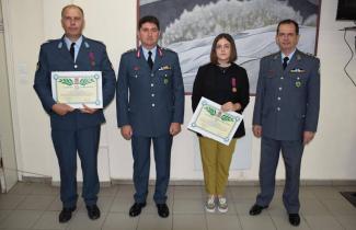 Τα Αστυνομικά Μετάλλια και τα αντίστοιχα διπλώματα απένειμε στον τιμώμενο εν ενεργεία Αρχιφύλακα και στην κόρη του τιμώμενου θανόντα πρώην Αρχιφύλακα, ο Γενικός Περιφερειακός Αστυνομικός Διευθυντής Δυτικής Μακεδονίας, Ταξίαρχος ΣΙΟΡΕΝΤΑΣ Δημήτριος.