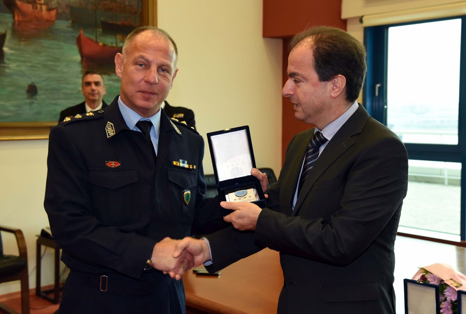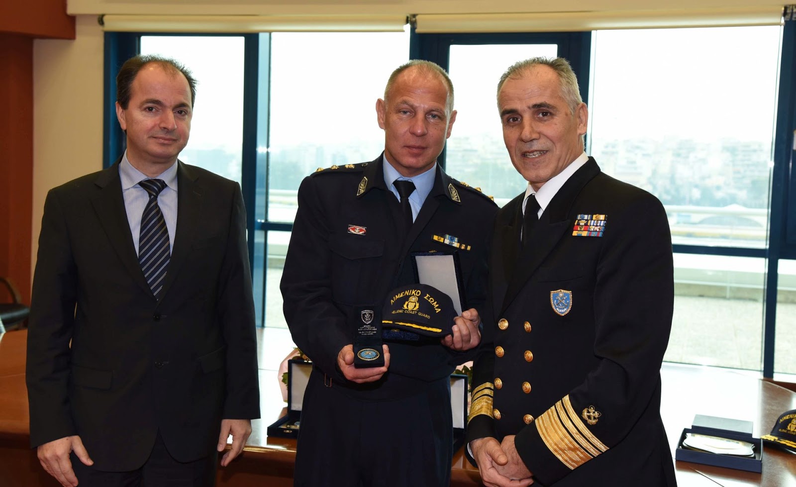 Στο πλαίσιο της αγαστής συνεργασίας της Ελληνικής Αστυνομίας με το Λιμενικό Σώμα – Ελληνική Ακτοφυλακή πραγματοποιήθηκε σήμερα, στο κτίριο του Αρχηγείου Λ.Σ.-ΕΛ.ΑΚΤ., παρουσία του Γενικού Γραμματέα του Υπουργείου Ναυτιλίας και Νησιωτικής Πολιτικής Ιωάννη Θεοτοκά, του Αρχηγού Λιμενικού Σώματος – Ελληνικής Ακτοφυλακής Αντιναυάρχου Λ.Σ. Αθανάσιου Αθανασόπουλου και του Κεντρικού Λιμενάρχη Πειραιά Αρχιπλοιάρχου Λ.Σ. Χρήστου Ζαφειρίου τελετή απονομής τιμητικών διακρίσεων σε στελέχη της Ελληνικής Αστυνομίας.