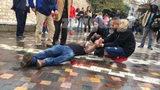 Ένας άνδρας, περίπου 30 ετών, αποπειράθηκε να κόψει τις φλέβες του, πάνω στην πλατεία Μοναστηρακίου, στις 12:30 της Κυριακής.