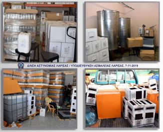 Από την Υποδιεύθυνση Ασφάλειας Λάρισας εντοπίστηκε μεγάλη ποσότητα λαθραίου οινοπνεύματος, η οποία προοριζόταν για την παρασκευή αλκοολούχων ποτών, σε αποθηκευτικούς χώρους επιχείρησης στις ευρύτερες περιοχές της Λάρισας και της Μαγνησίας.