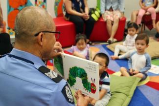 Σε συνεργασία με τη Δημόσια Βιβλιοθήκη, δύο αστυνομικοί διοργάνωσαν μια εκδήλωση δημόσιας ανάγνωσης, προκαλώντας έκπληξη σε δεκάδες παιδιά που δεν είχαν δει ποτέ από κοντά αστυνομικό.
