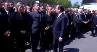 Μια δυσάρεστη εξέλιξη επιφύλασσε ένας ανώτερος αξιωματικός της Γαλλικής Αστυνομίας, τον πρόεδρο της Δημοκρατίας Φρανσουά Ολάντ και τον πρωθυπουργό Μανουέλ Βαλς στην τελετή μνήμης στις Βερσαλλίες για τον αστυνομικό διοικητή και την σύντροφό του που δολοφονήθηκαν στο Παρίσι από τρομοκράτη.