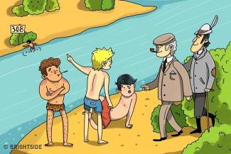 Ο αστυνομικός και ο βοηθός του είδαν κάποιους κολυμβητές, τους πλησίασαν και τους ρώτησαν: “Ψάχνουμε για έναν άντρα στην ηλικία σας. Πρέπει να είναι κάπου εδώ κοντά. Μήπως τον έχετε δει;” “Πέρασε από μπροστά μας πριν από μερικά λεπτά. Έπεσε μέσα στο ποτάμι. Μπορείτε να τον βρείτε στην άλλη μεριά του ποταμιού. Βιαστείτε!” Ο ευγενικός νεαρός προσφέρθηκε να δώσει στον αστυνόμο Βαρνίκ την βάρκα του, αλλά εκείνος αρνήθηκε. “Άστον να ξεφύγει”, είπε ο αστυνομικός. “Τώρα, θέλω να μάθω για εσάς.”