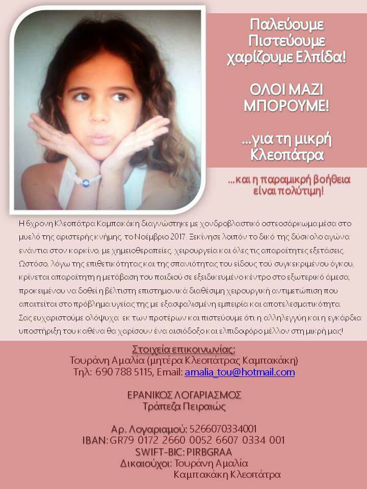 Το κοριτσάκι της φωτογραφίας είναι συγγενής συναδέλφου της Δ.Α. Αλεξανδρούπολης όποιος επιθυμεί ας βοηθήσει..