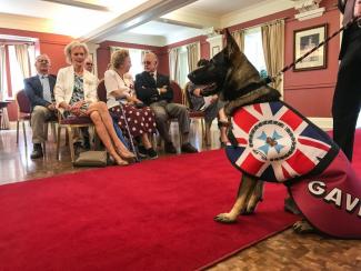 Έτσι... απέτυχε να γίνει αστυνομικός σκύλος και πλέον απολαμβάνει την νέα του δουλειά! Καλωσορίζει τους επισκέπτες στο σπίτι του κυβερνήτη του Κουίνσλαντ της Αυστραλίας.