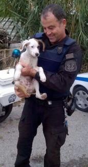 Ο αστυνομικός της ομάδας Δίας και ενώ ήταν σε περιπολία είδε το κουταβάκι που βλέπετε να τρέχει έντρομο στην εθνική οδό.