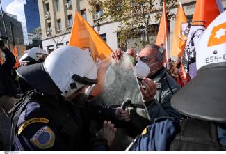 Την 09.20 ώρα, κατά την προσπάθεια οριοθέτησης της συγκέντρωσης, για να μην παρεμποδίζεται η κυκλοφορία των οχημάτων στην οδό Πανεπιστημίου, ομάδα από τους συγκεντρωμένους επιτέθηκε στις αστυνομικές δυνάμεις με κοντάρια, καταλαμβάνοντας το οδόστρωμα της οδού Πανεπιστημίου. Κατά τη διάρκεια της ανωτέρω επίθεσης τραυματίσθηκε ένας αστυνομικός που διακομίσθηκε στο Νοσοκομείο.