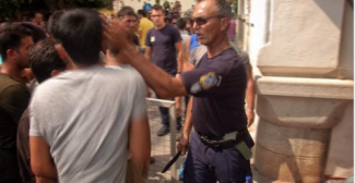 «Έλληνας αστυνομικός κραδαίνει μαχαίρι και χαστουκίζει τρομοκρατημένους Πακιστανούς και Σύρους, ενώ περιμένουν για τα χαρτιά τους. καλώς ήρθατε στην Κω».