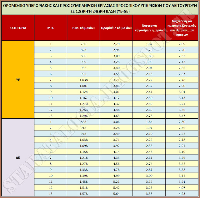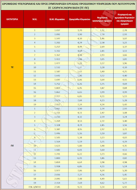 ► Η ωριαία αποζημίωση που χορηγείται για εργασία νυχτερινή εργάσιμων ημερών σε δημόσιες υπηρεσίες που λειτουργούν είτε όλες τις ημέρες του μήνα είτε σε δωδεκάωρη ή εικοσιτετράωρη βάση αυξάνεται κατά 50%, από το 40% στο 60% του ωρομισθίου.