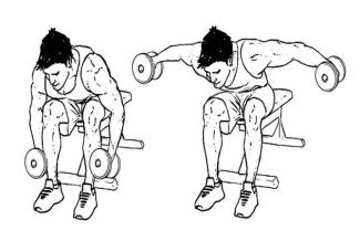 Άλλη μία άσκηση που αξίζει την προσοχή μας ή μάλλον αξίζει να μην την προσέξουμε ξανά (όσο και αν επιμένει ο personal trainer ) είναι οι εκτάσεις χεριών με αλτήρες από σκυφτή θέση καθιστός στον πάγκο .Είναι άσκηση που γυμνάζει το πίσω μέρος του ώμου και την πλάτη ,βοηθάει στην γράμμωση και σένα όμορφο «σχηματισμό» στο χέρι αλλά σε αυτή την θέση και με το βάρος να βγαίνει έξω απτήν βάση στήριξης η μέση πραγματικά παίρνει φωτιά και θα αντιμετωπίσει σίγουρα προβλήματα στο μέλλον .