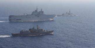 Στην κοινή ναυτική άσκηση Ελλάδας-Γαλλίας που πραγματοποιήθηκε σήμερα στη θαλάσσια περιοχή από την Κύπρο έως το ανατολικό άκρο της Κρήτης συμμετείχαν τέσσερις φρεγάτες του Πολεμικού Ναυτικού.