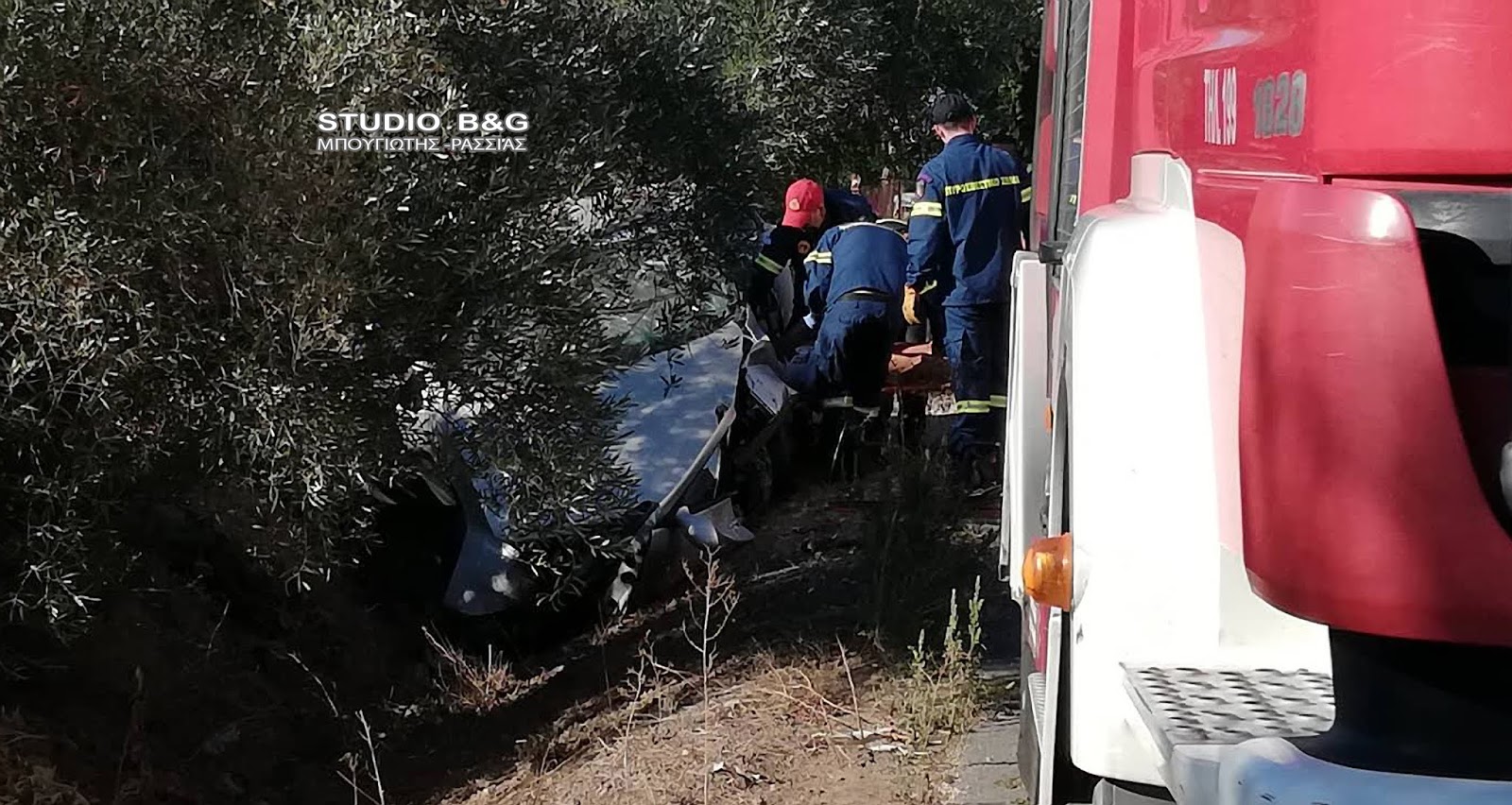 Στο σημείο έσπευσαν δυο οχήματα με 6 άνδρες της πυροσβεστικής που απεγκλώβισαν τους δυο τραυματίες