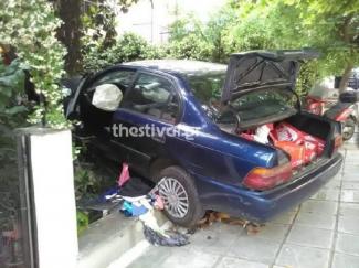 Στην αυλή σπιτιών στην Καλαμαριά της Θεσσαλονίκης κατέληξε όχημα διαρρηκτών.