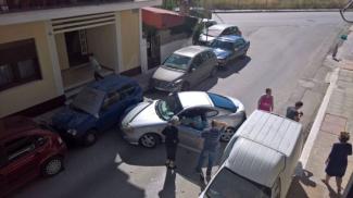 Το αποτέλεσμα;… Έξι σταθμευμένα αυτοκίνητα τρακαρισμένα και ένα… μικρό θαύμα που δεν είχαμε τραυματίες καθώς το σημείο είναι πολυσύχναστο και παιδάκια περνούν συνεχώς από εκεί!…