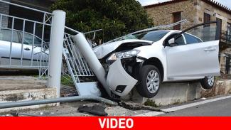 Λευκό Ι.Χ. αυτοκίνητο κατευθυνόμενο από Σπάρτη προς Τρύπη, χτύπησε σε μια πέτρινη κολόνα, ξέφυγε από την πορεία του, σηκώθηκε στις 2 ρόδες, γκρέμισε τα κάγκελα και κατέληξε σε αυλή σπιτιού.