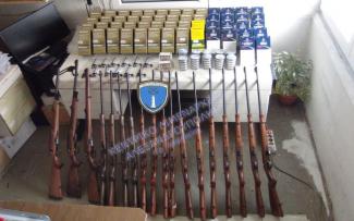 Βαρύς οπλισμός εντοπίστηκε κατά την έρευνα που πραγματοποιήθηκε και στο ρυμουλκούμενο του αυτοκινήτου του 40χρονου. Ειδικότερα βρέθηκαν τέσσερα αεροβόλα τυφέκια διαμετρήματος 5,5 χιλιοστών, 200.000 φυσίγγια διαμετρήματος περίπου 22 χιλιοστών και οκτώ διόπτρες σκόπευσης.