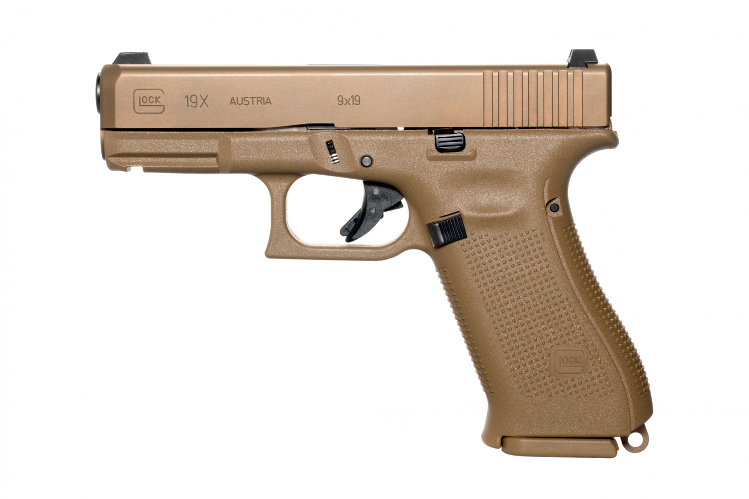 Το Glock 19X είναι σε χρώμα coyote και είναι το πρώτο εργοστασιακό έγχρωμο πιστόλι του κατασκευαστή. Η εσωτερική σύνθεση του πιστολιού είναι Gen5 και διαθέτει το βελτιωμένο σύστημα ελέγχου βολής, τα αμφιδέξια χειριστήρια και τη κάνη ακριβείας.
