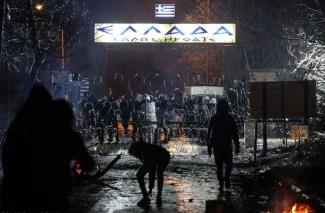 «Μάχη» των ΜΑΤ με αλλοδαπούς που επιχείρησαν να ρίξουν τον φράχτη στον Έβρο και να περάσουν τα ελληνικά σύνορα.