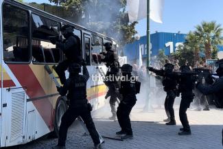 Οι άνδρες των ΕΚΑΜ έκαναν εντυπωσιακές επιδείξεις καταρρίχησης, με ειδικά σχοινιά. Ακολούθησε λεωφορειοπειρατεία, ενώ έπεσαν και κρότου λάμψης.